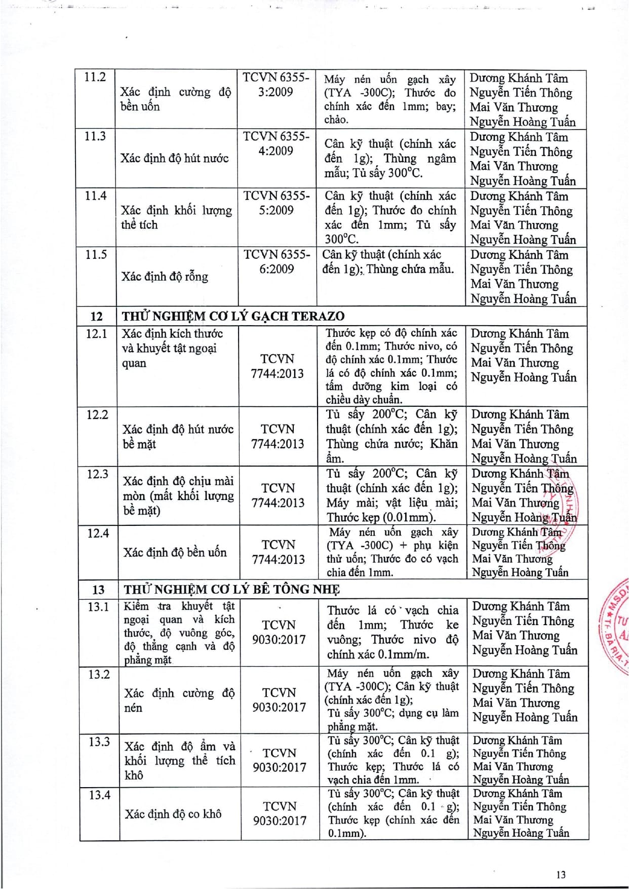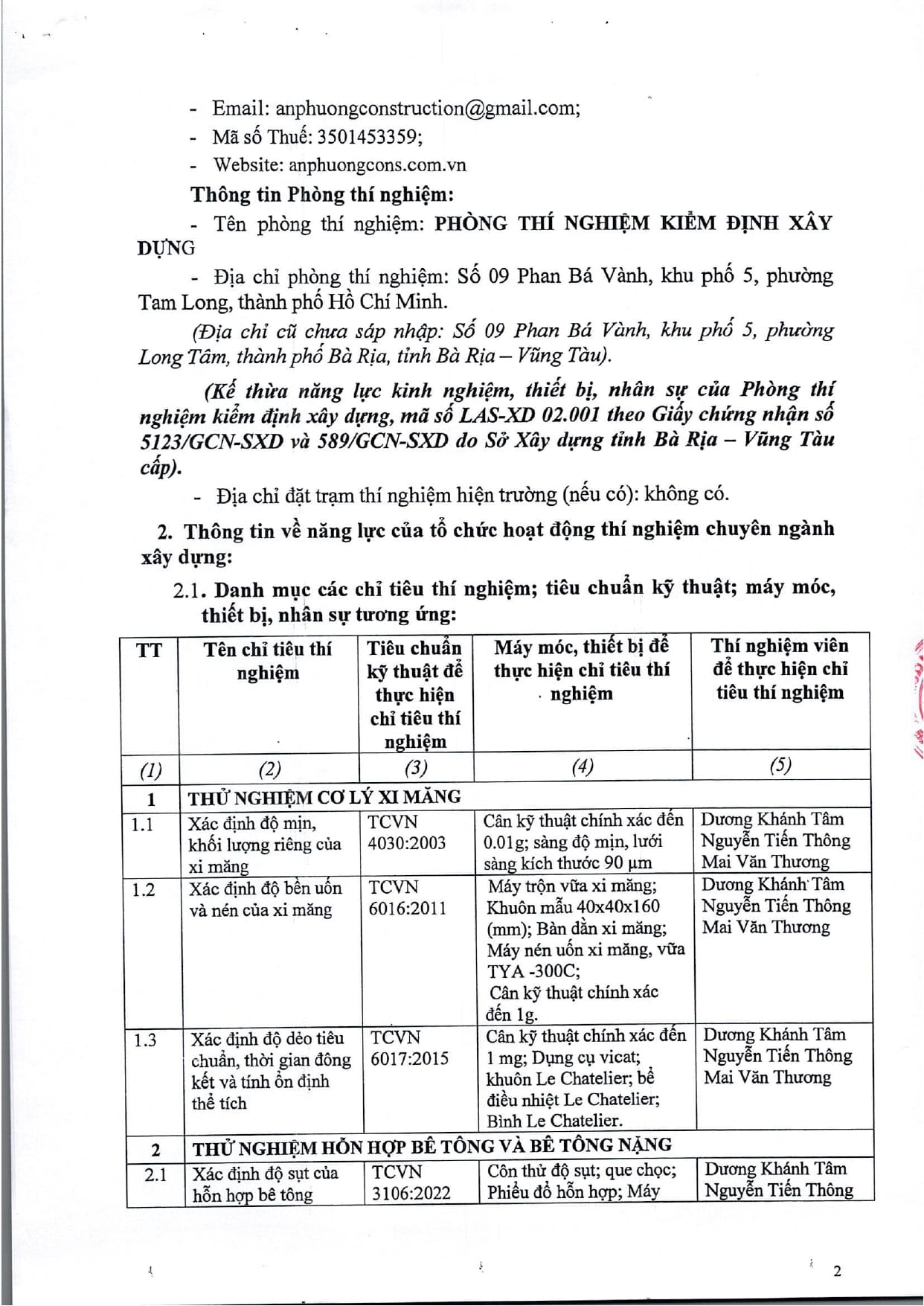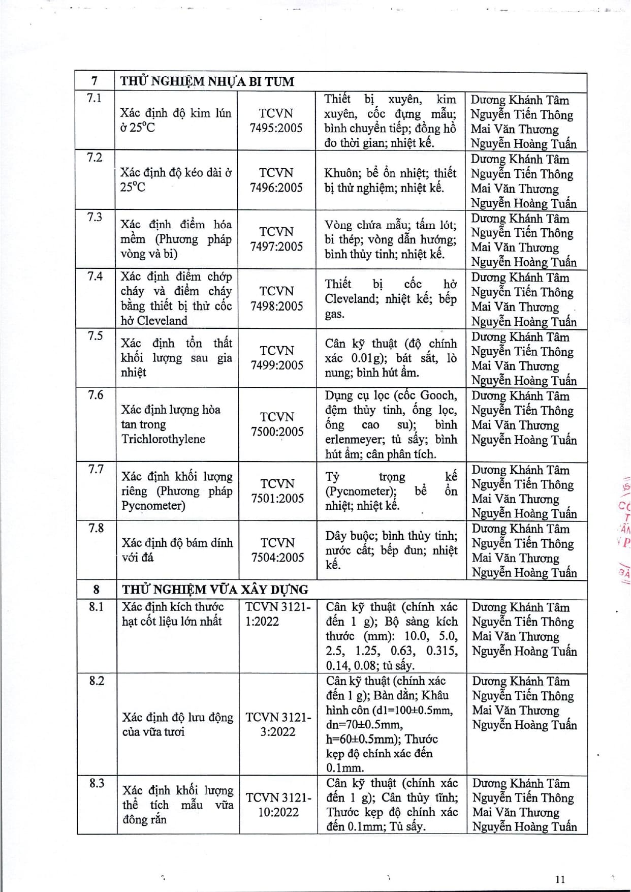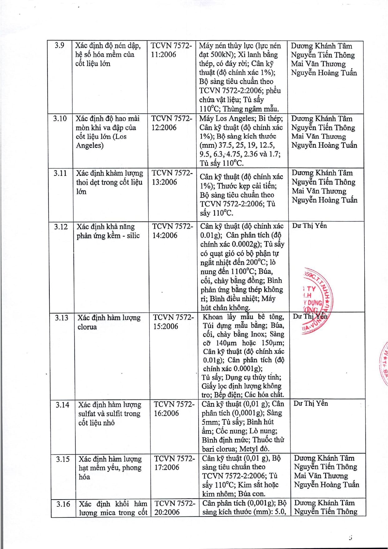 Trang chủ / Thí nghiệm xây dựng / DANH MỤC PHÉP THỬ