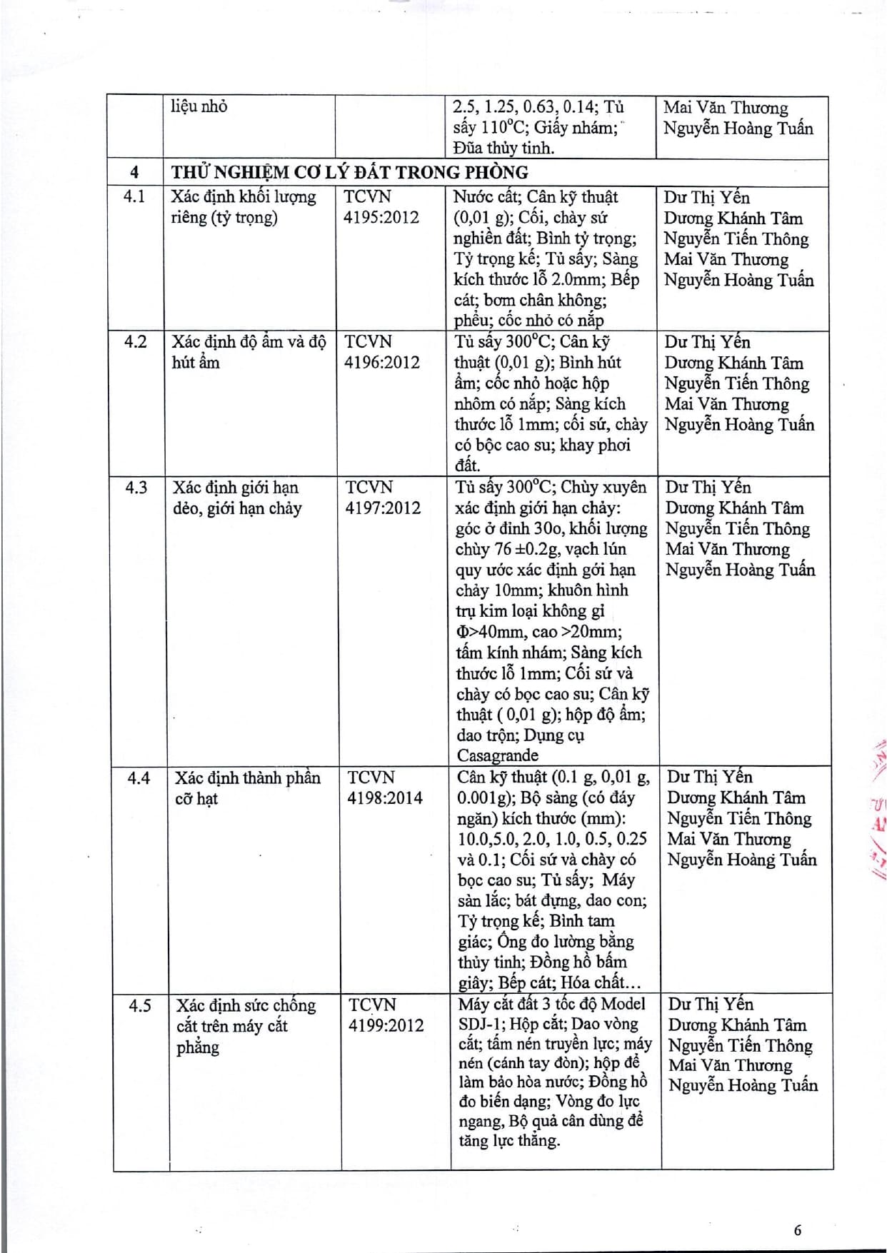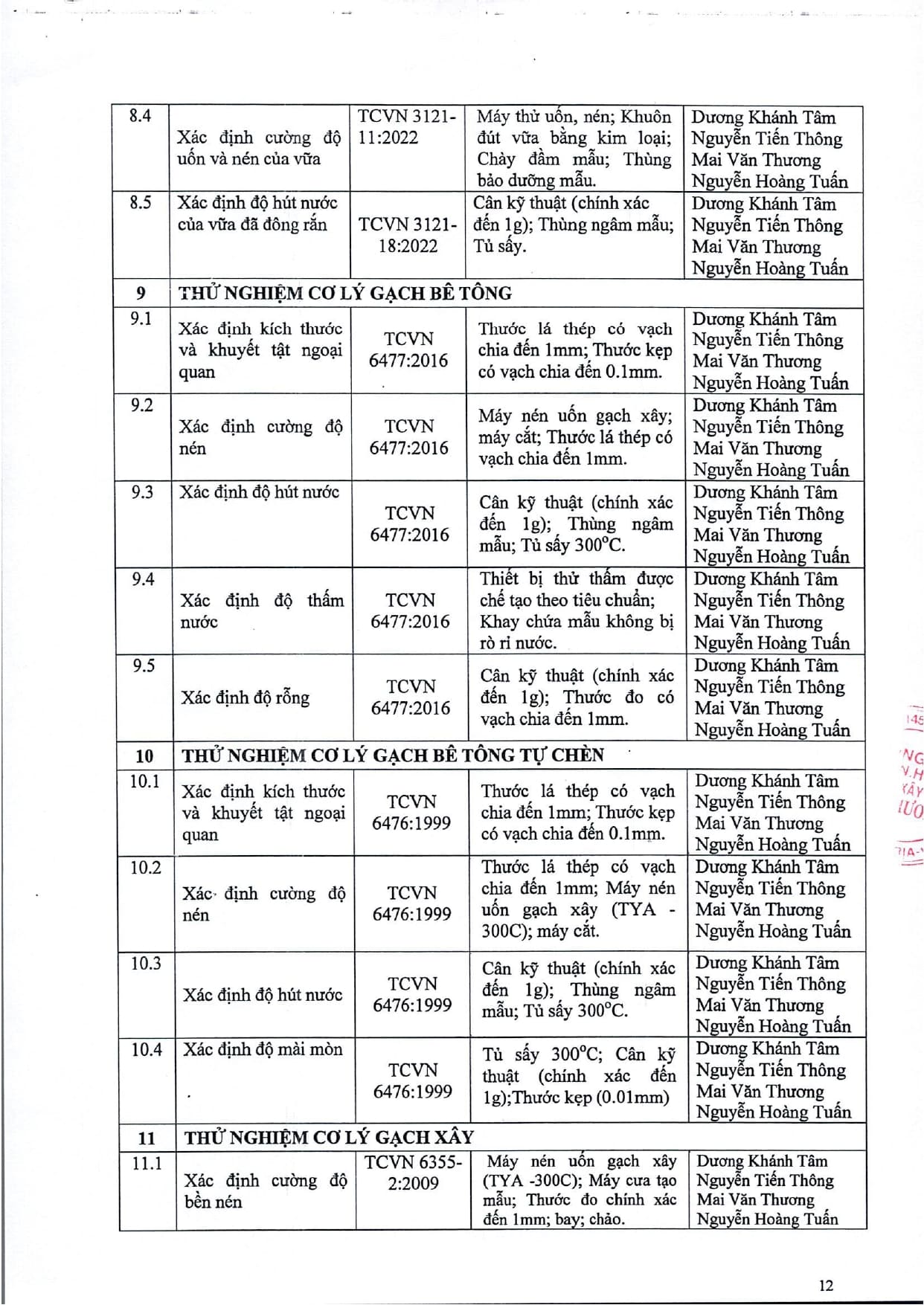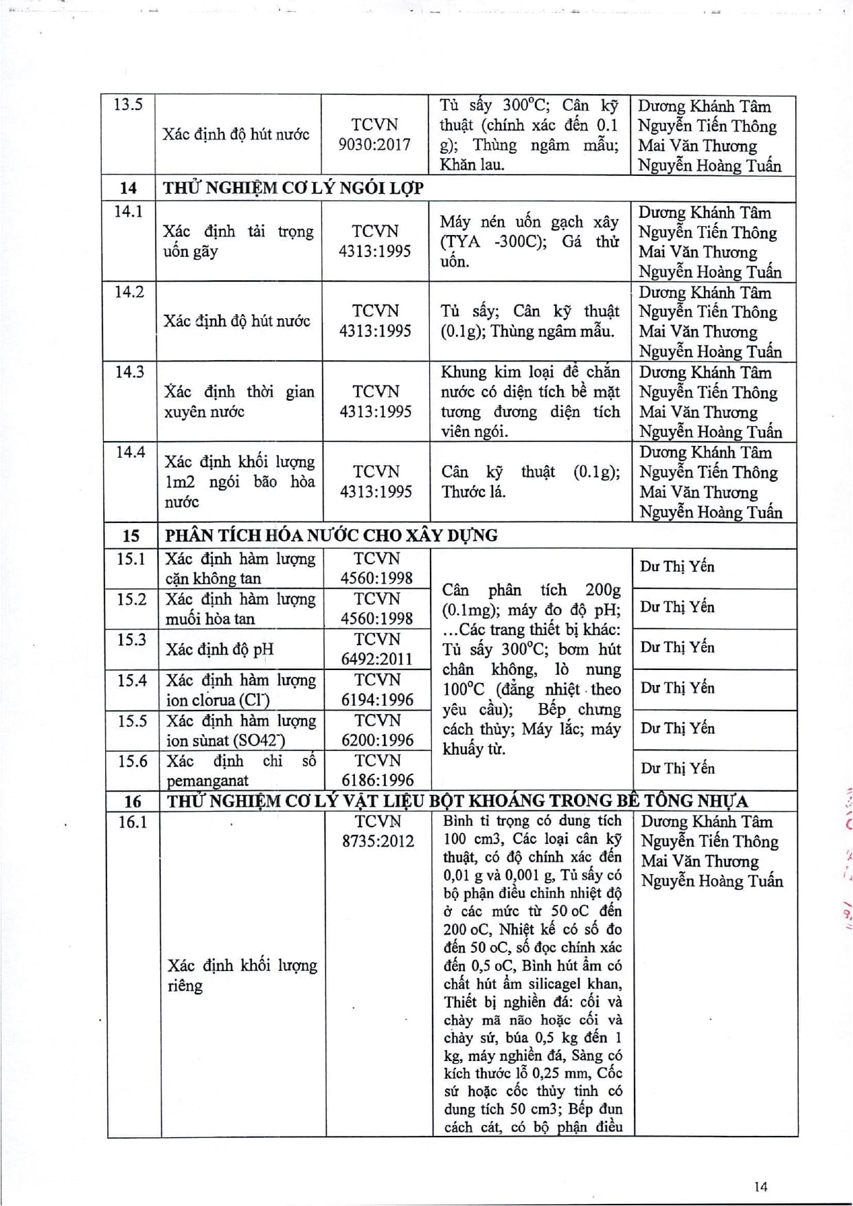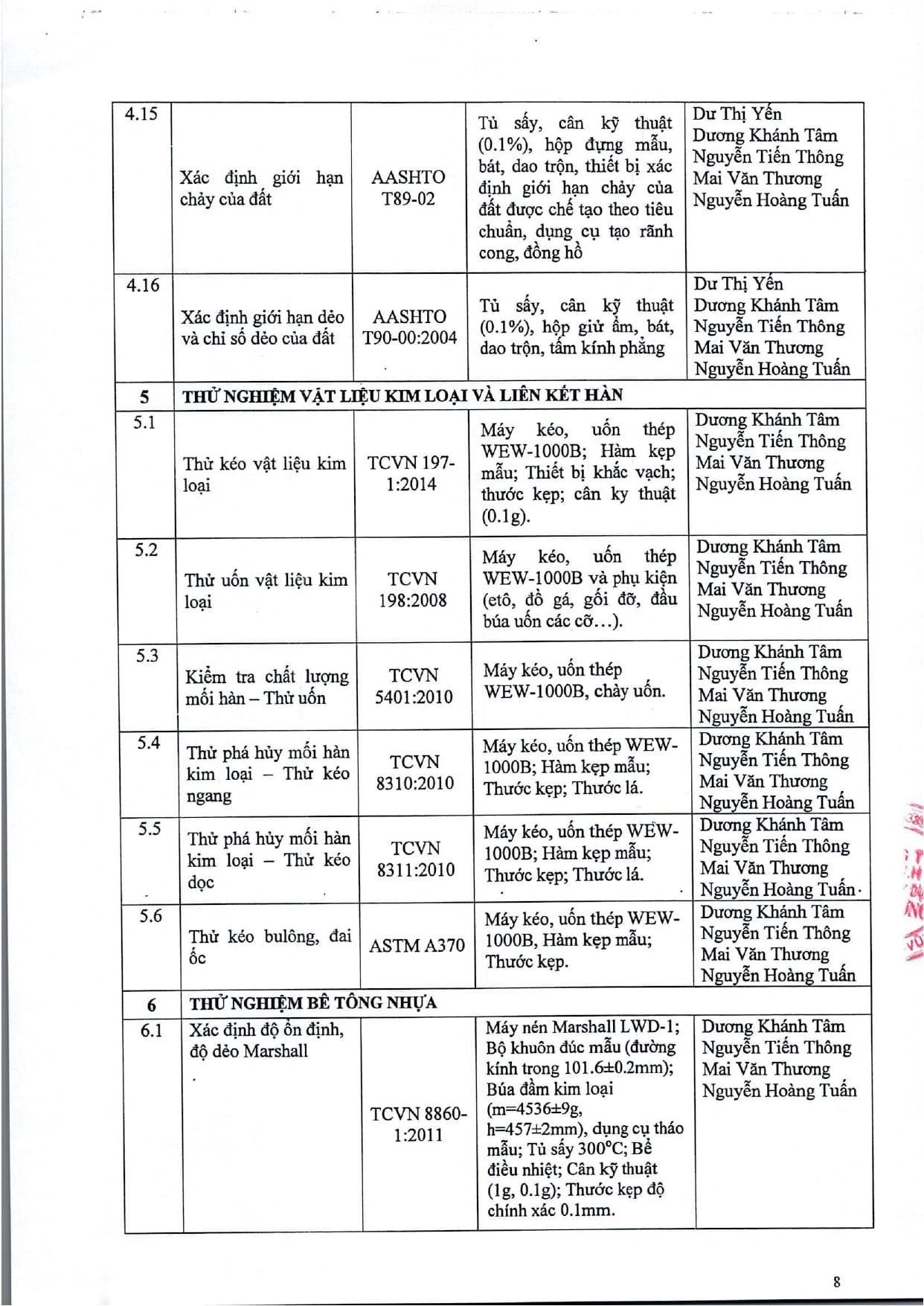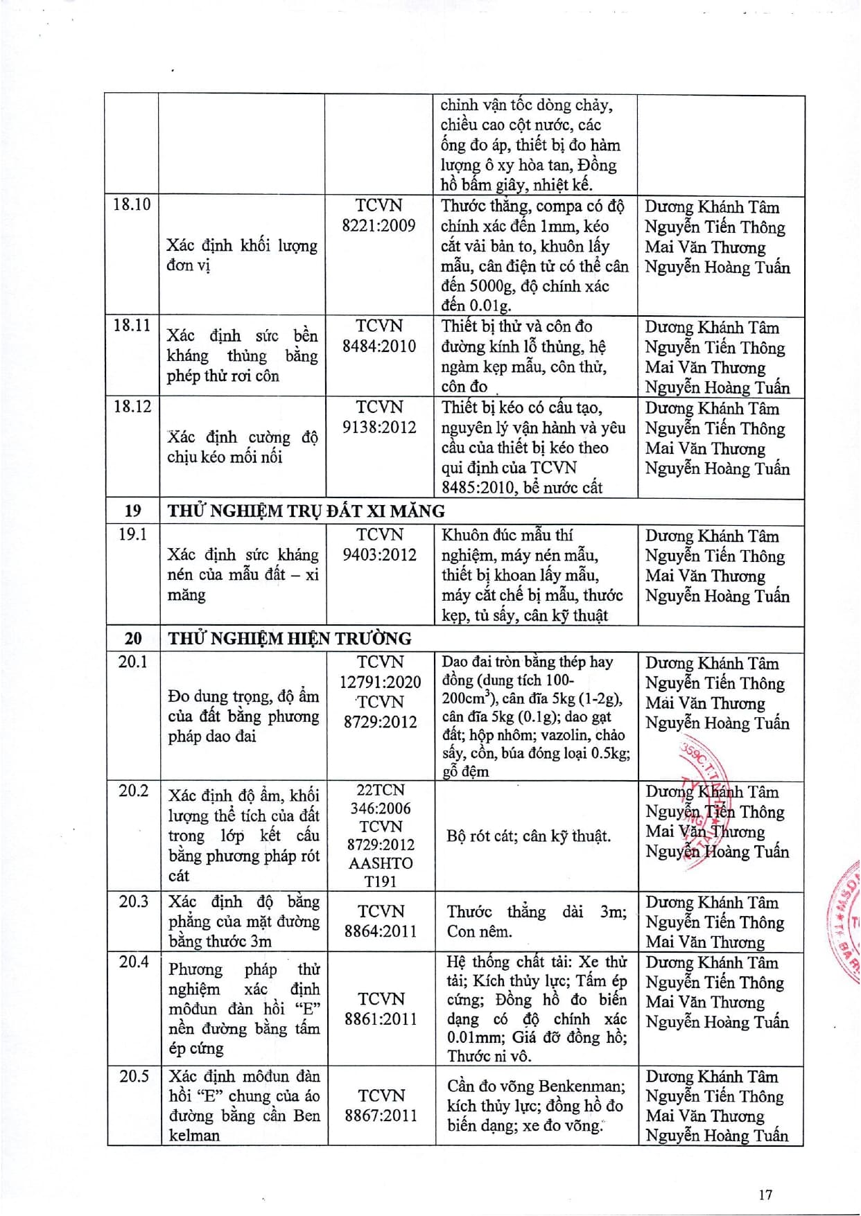 Trang chủ / Thí nghiệm xây dựng / DANH MỤC PHÉP THỬ