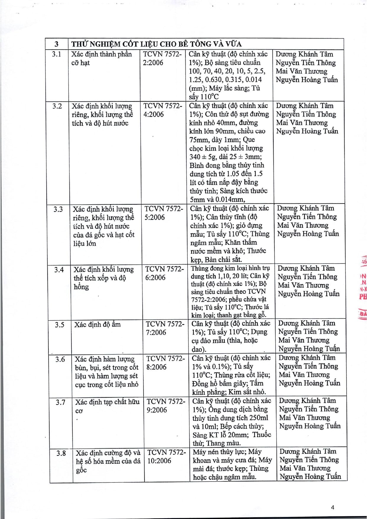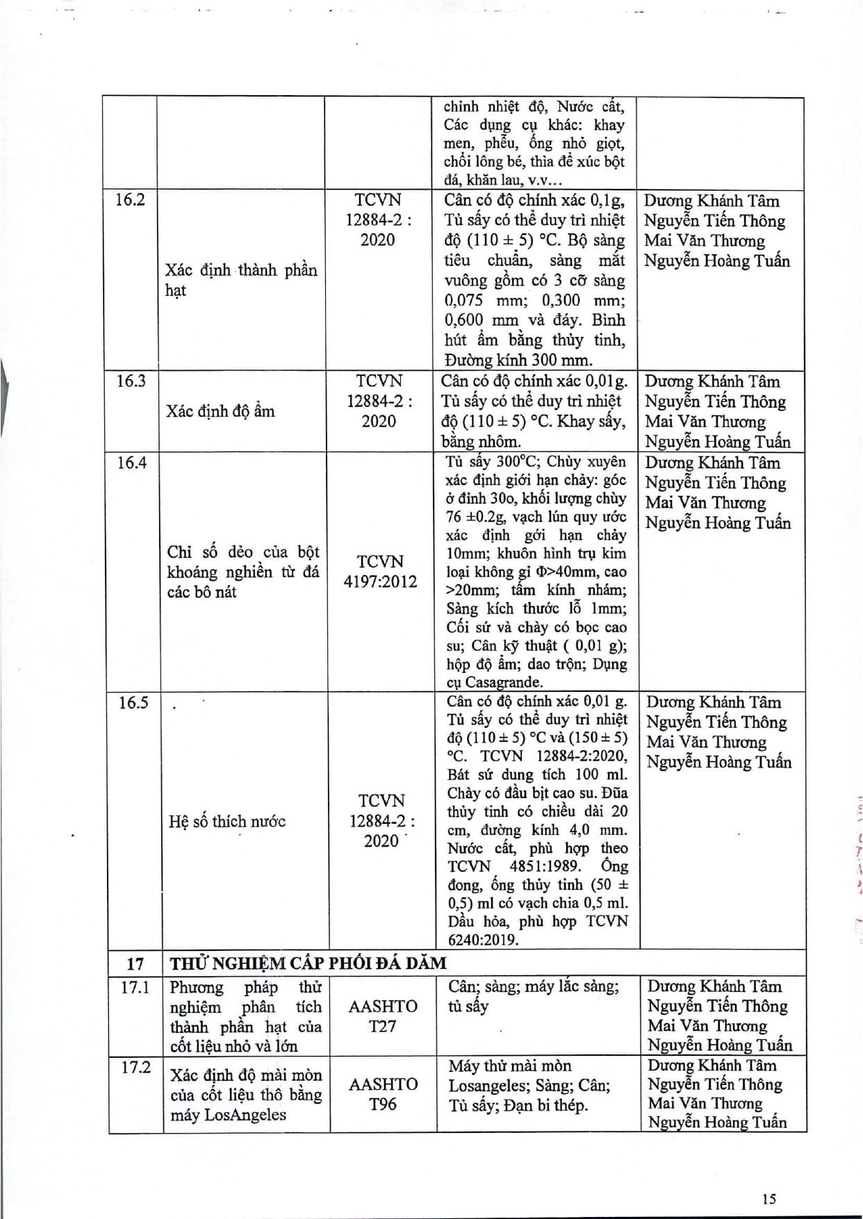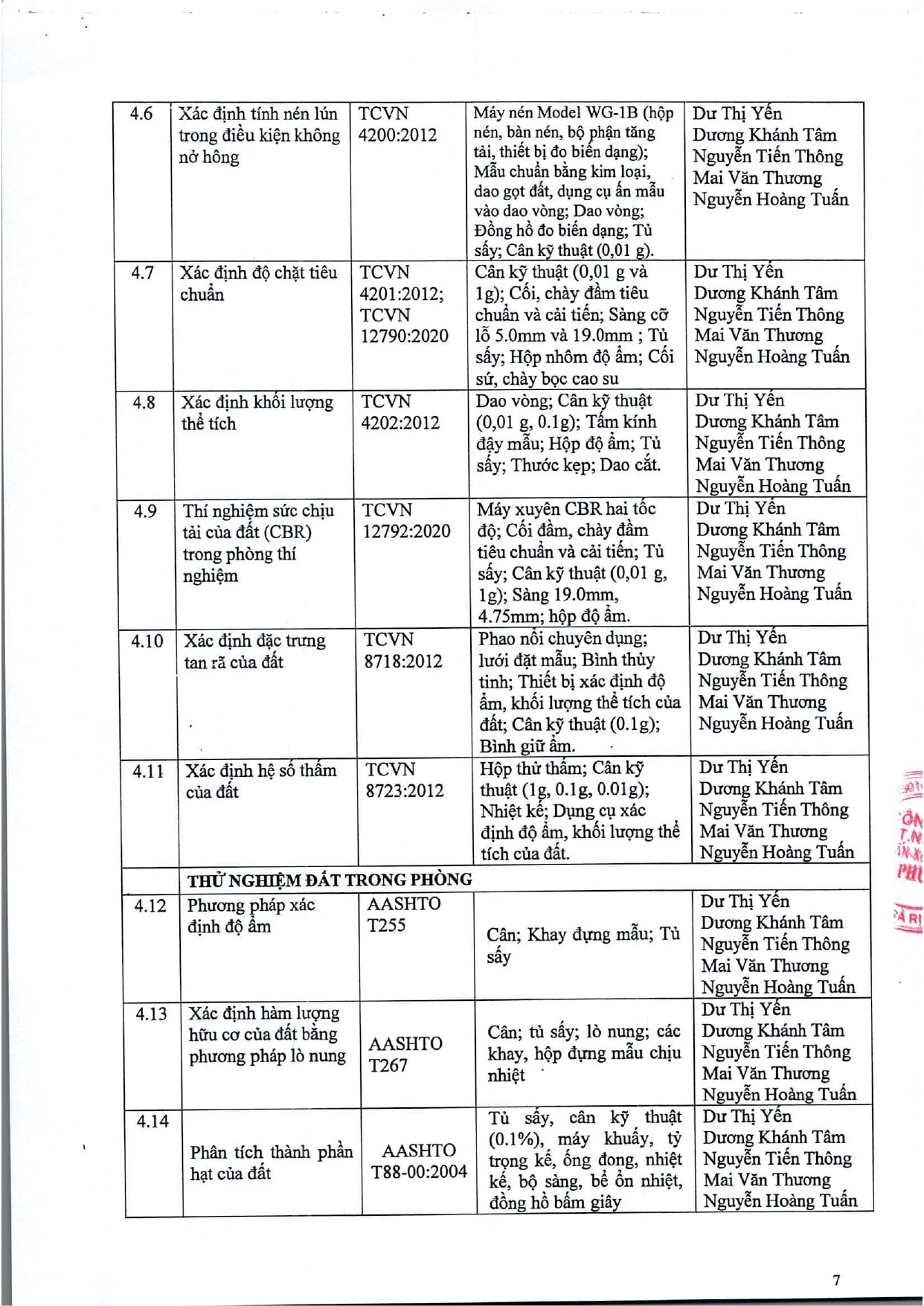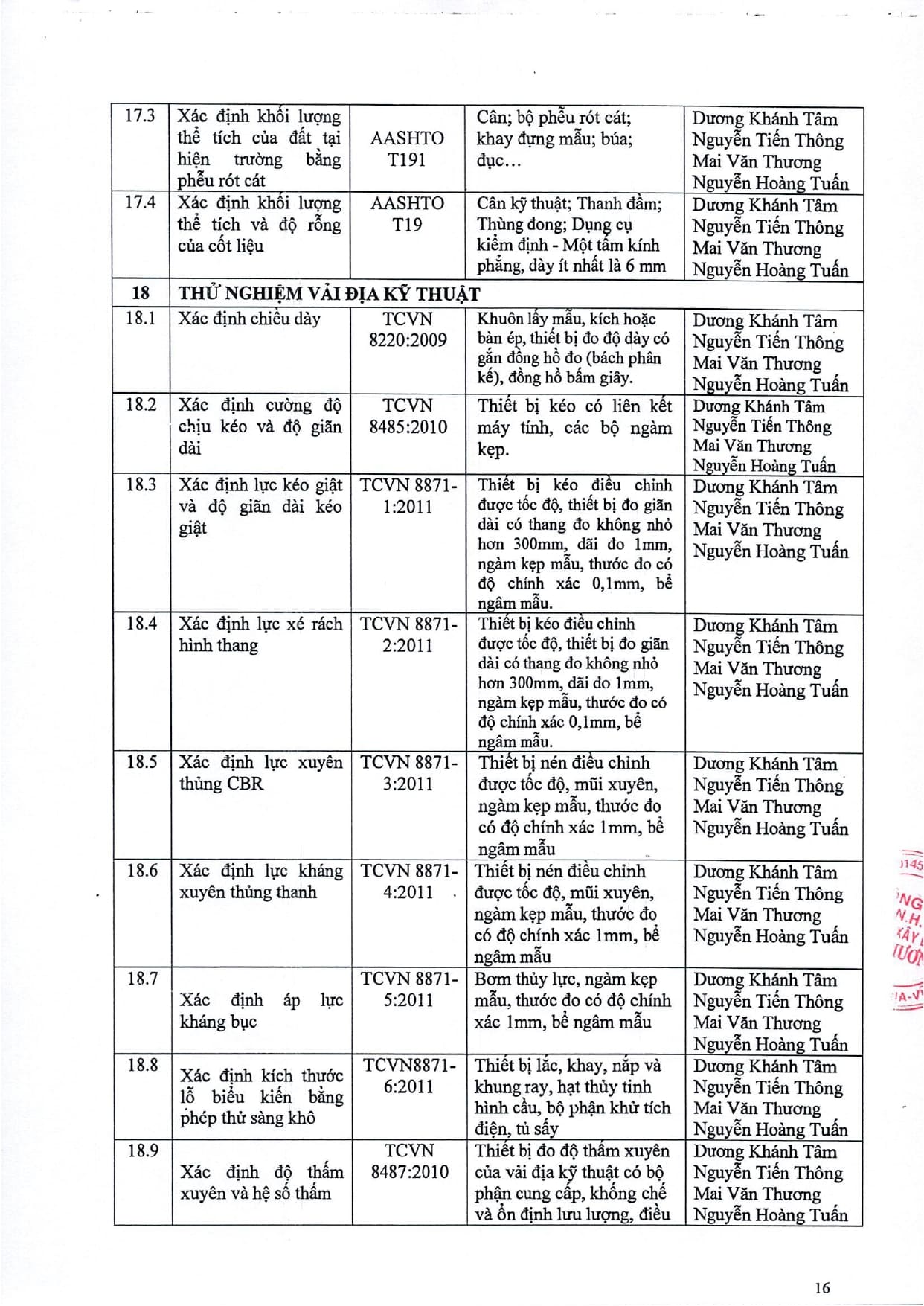 Trang chủ / Thí nghiệm xây dựng / DANH MỤC PHÉP THỬ
