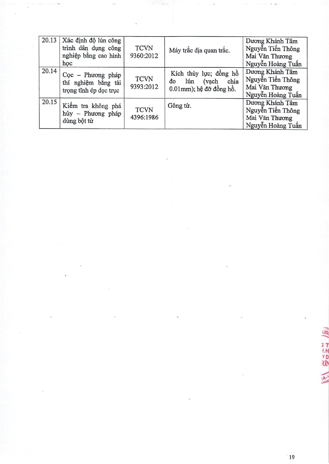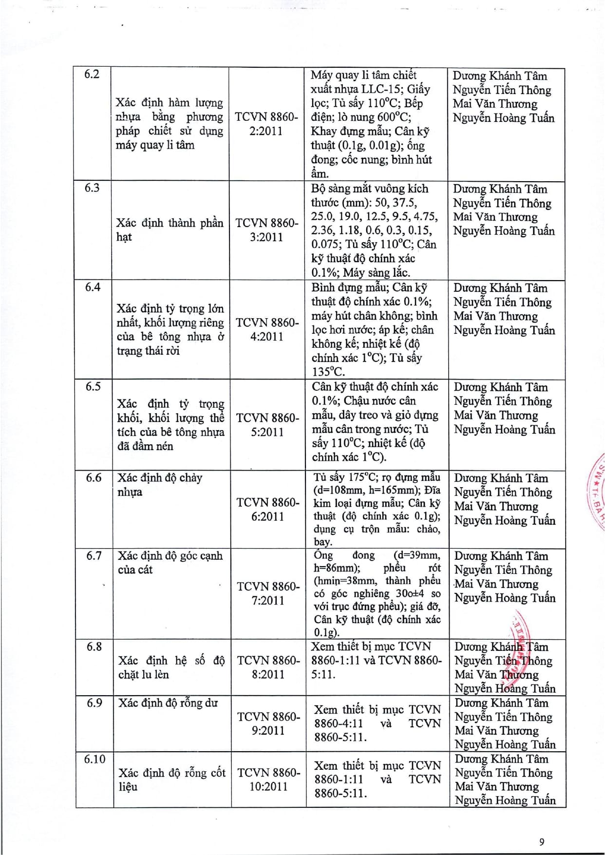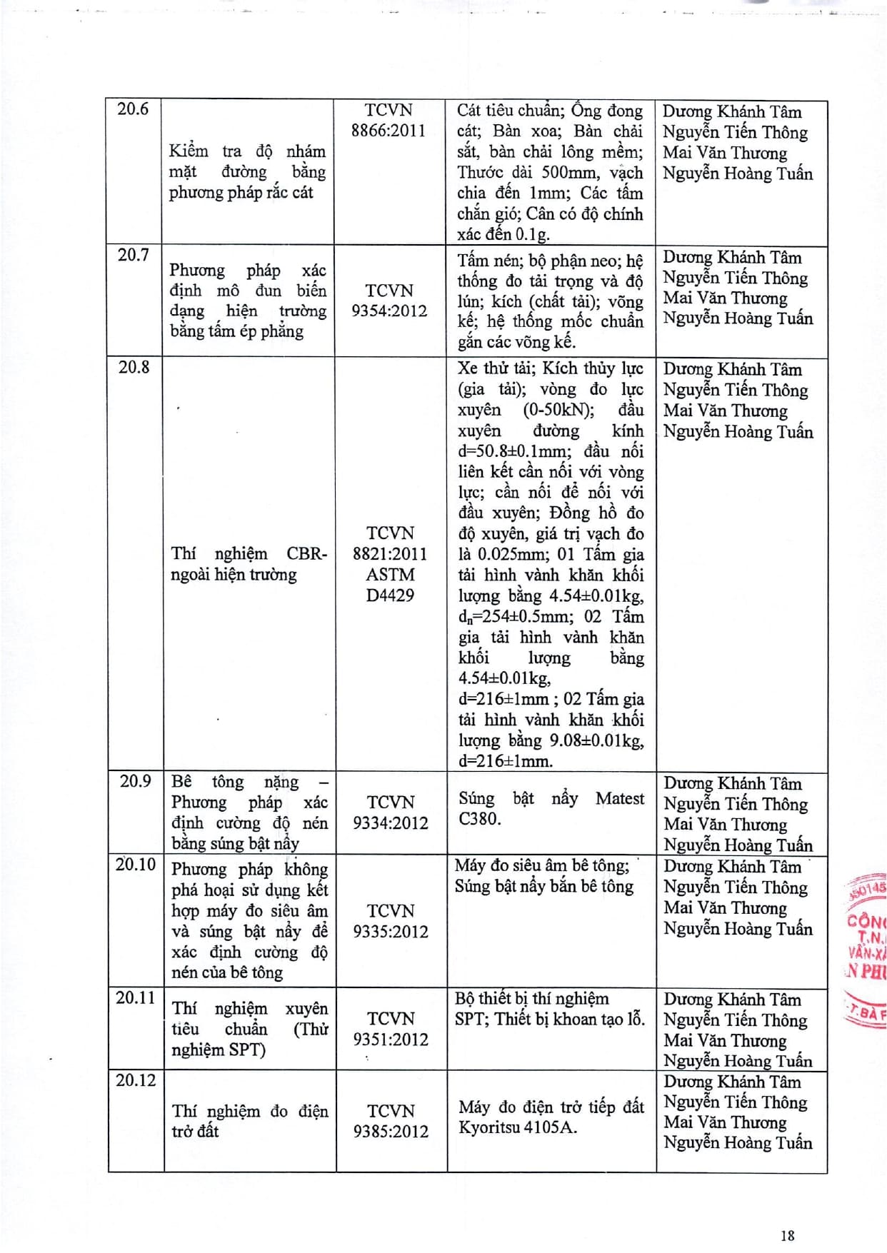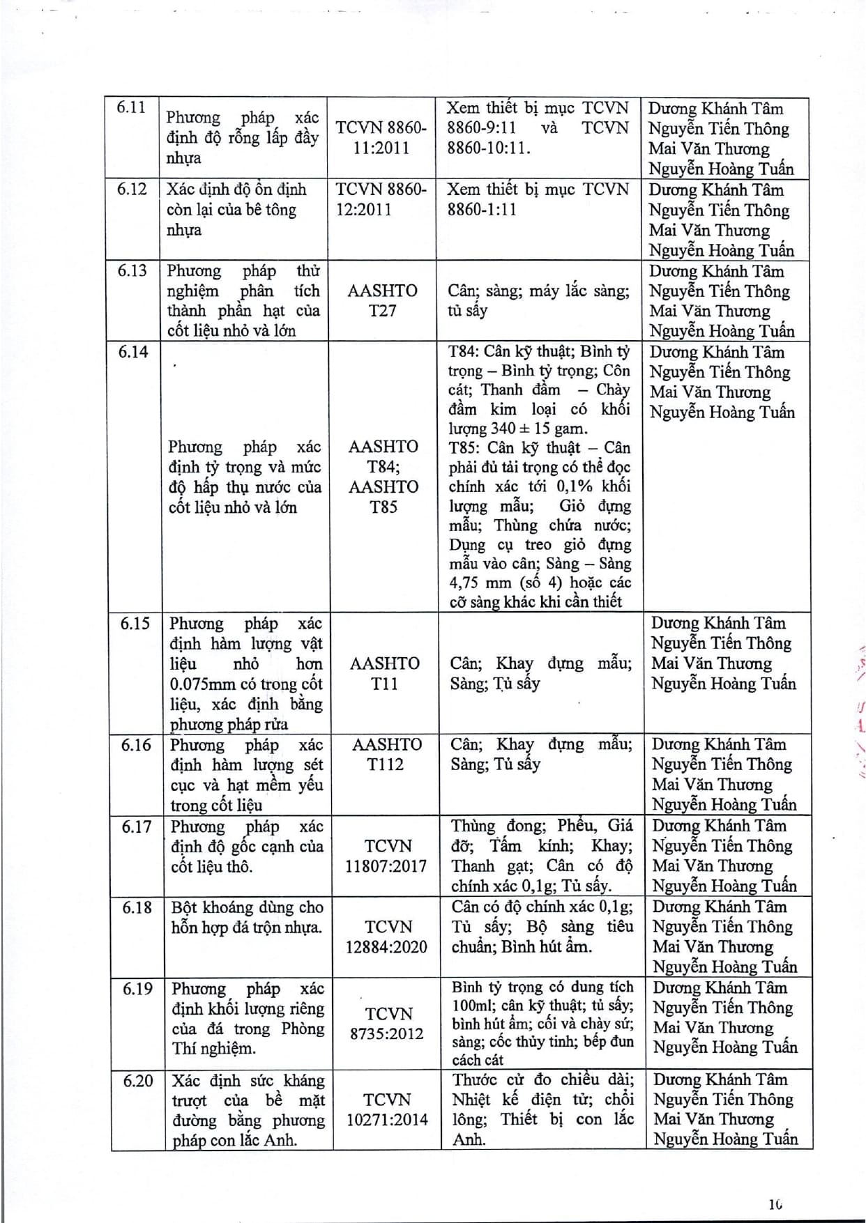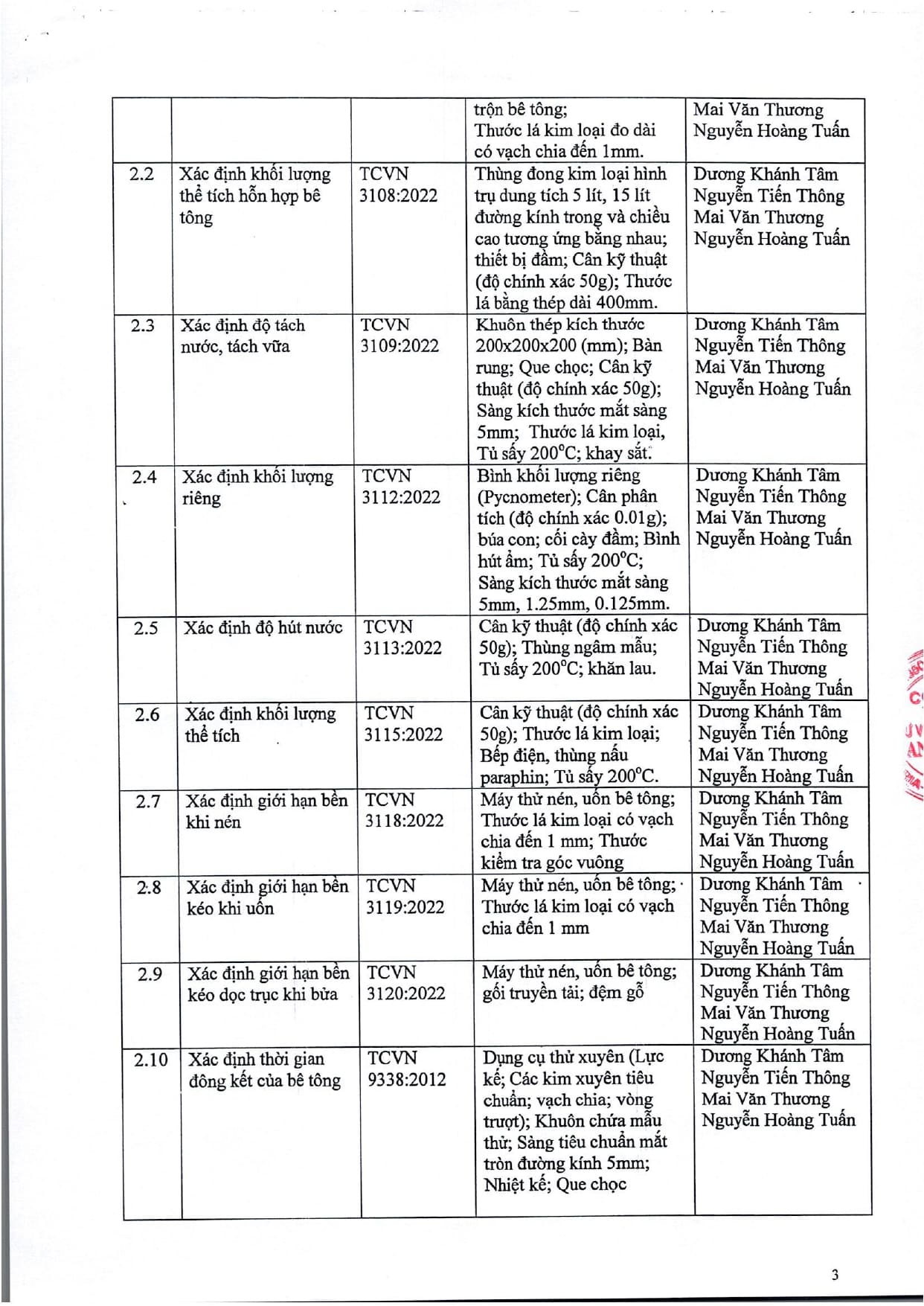 Trang chủ / Thí nghiệm xây dựng / DANH MỤC PHÉP THỬ