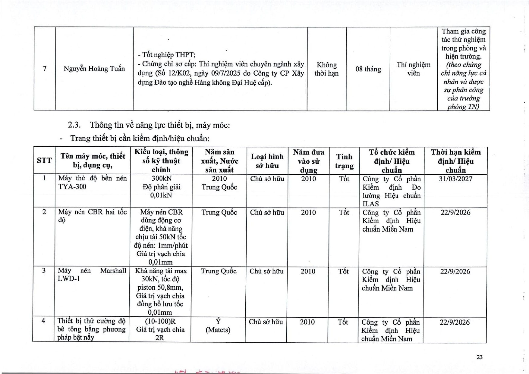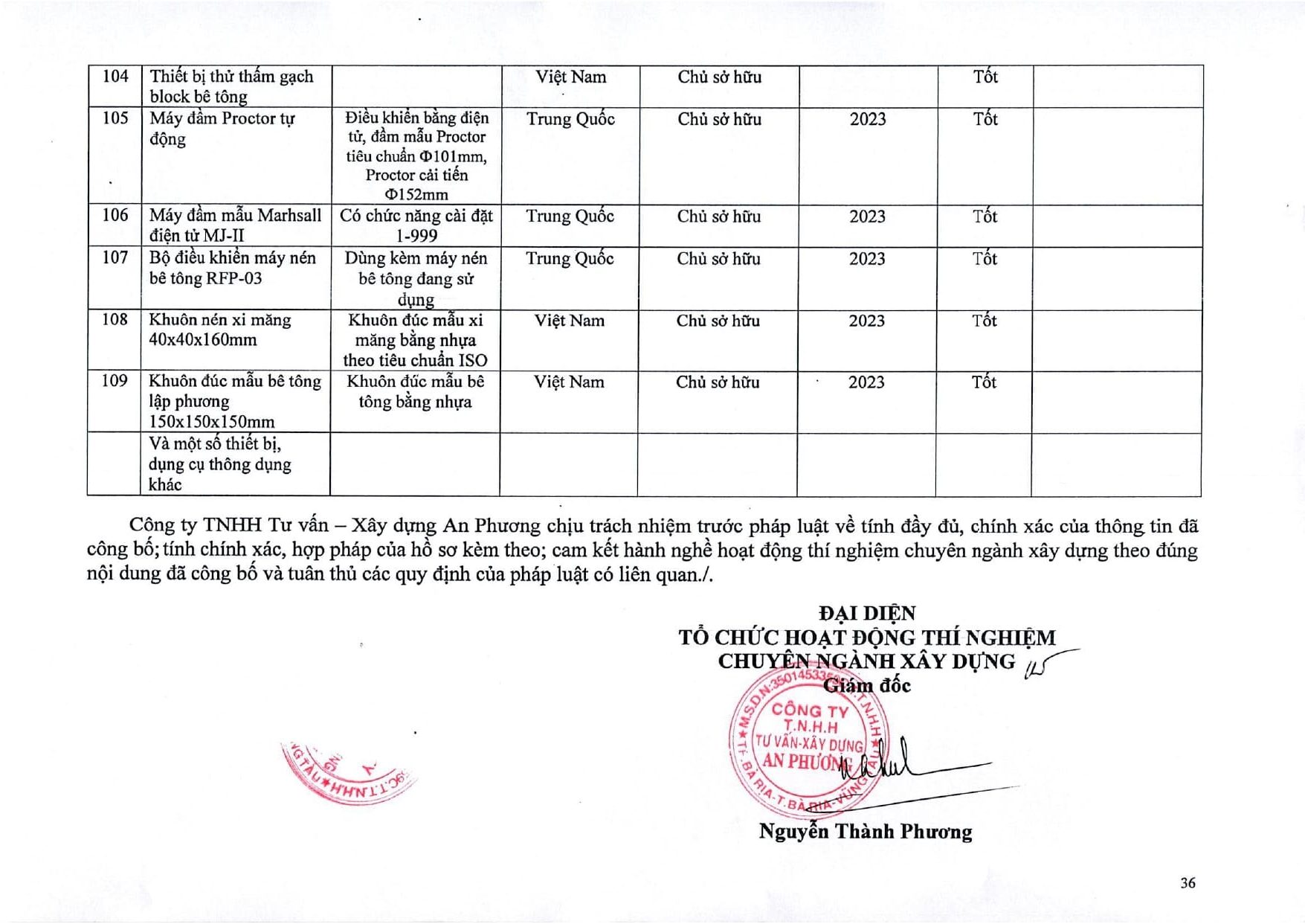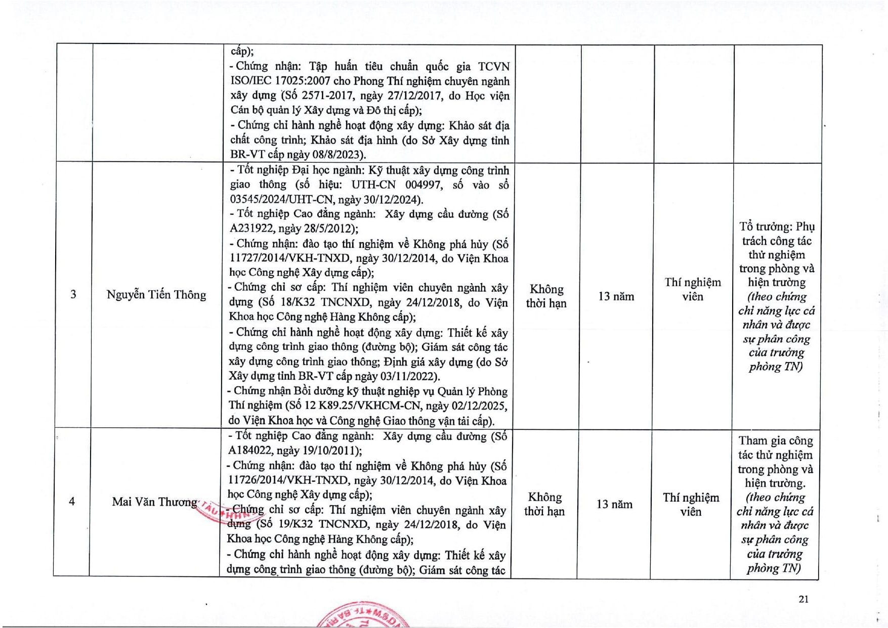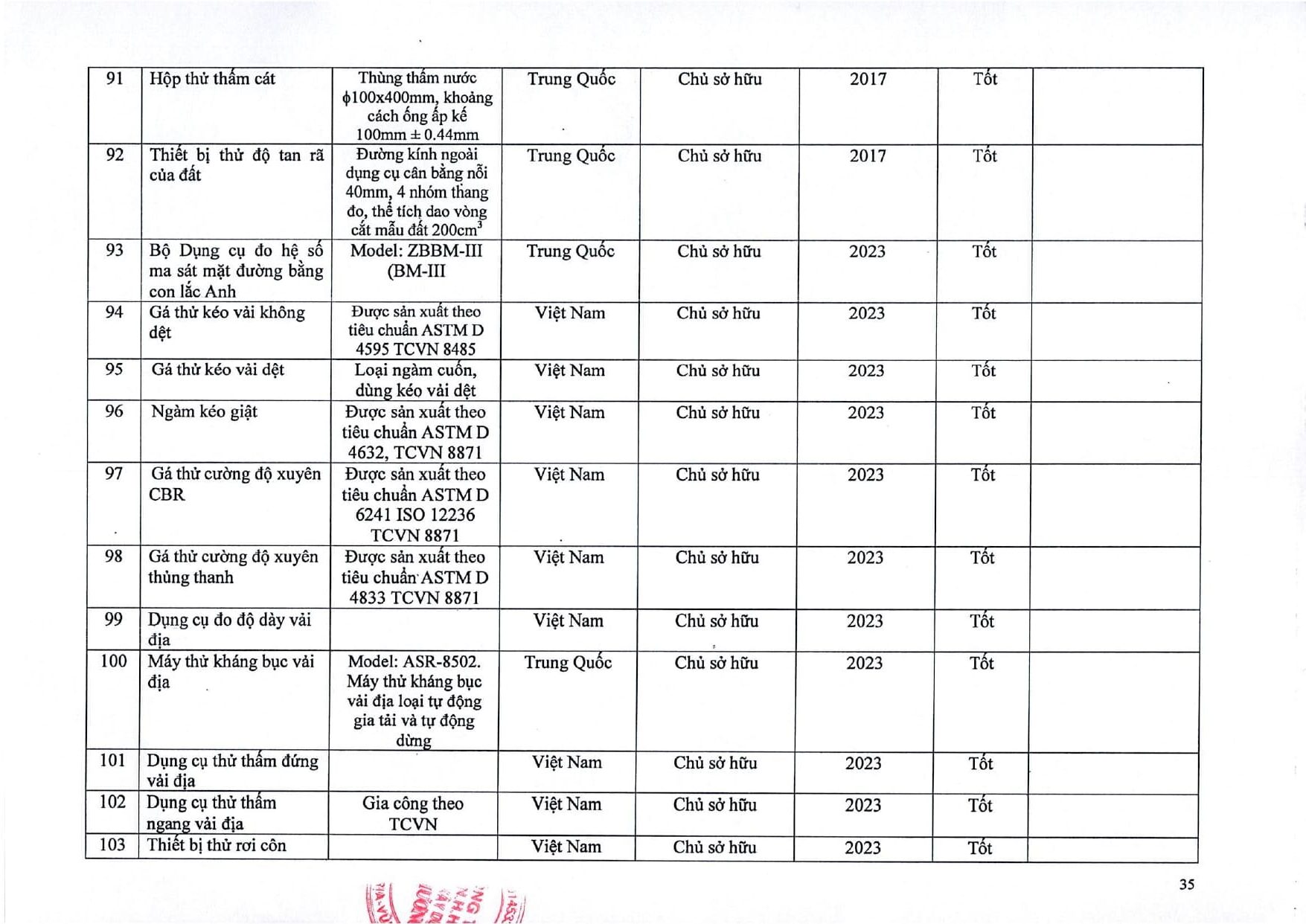 Trang chủ / Thí nghiệm xây dựng / DANH MỤC PHÉP THỬ