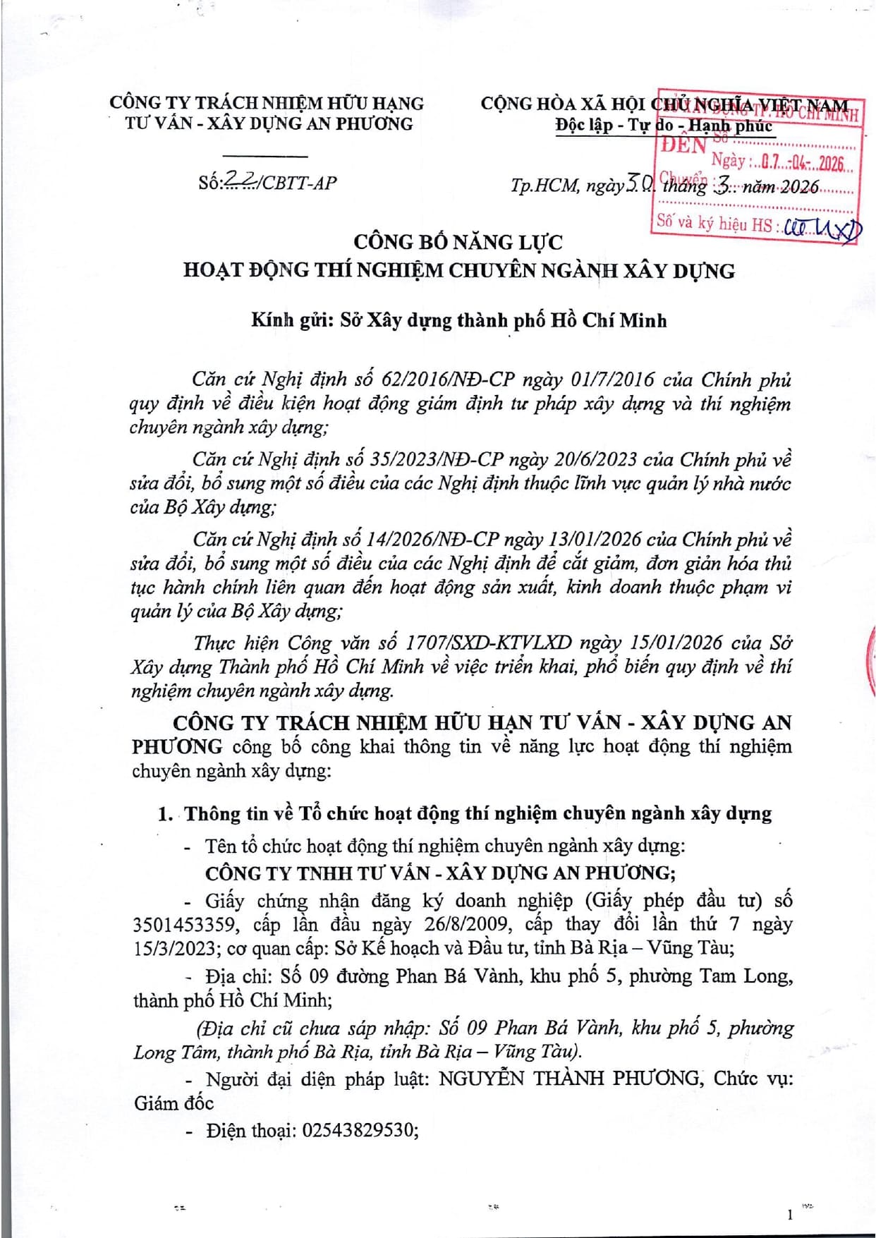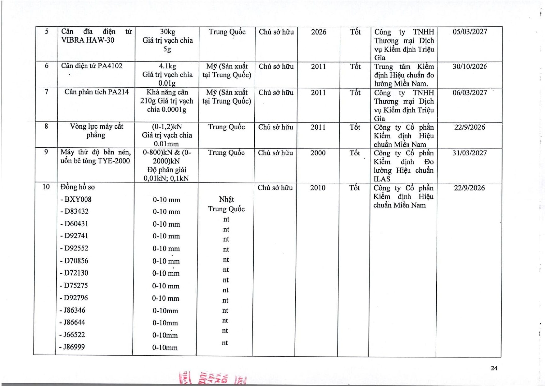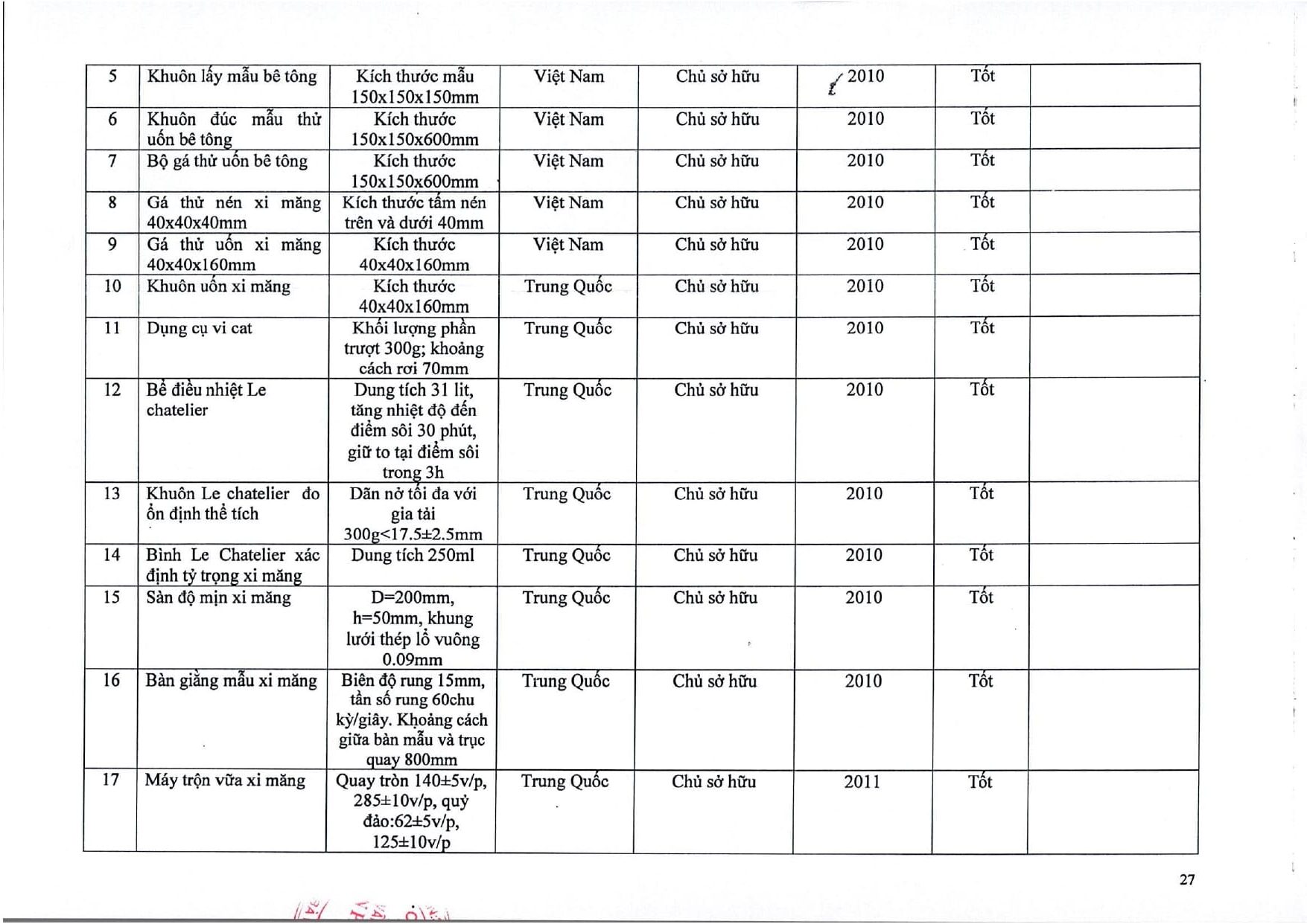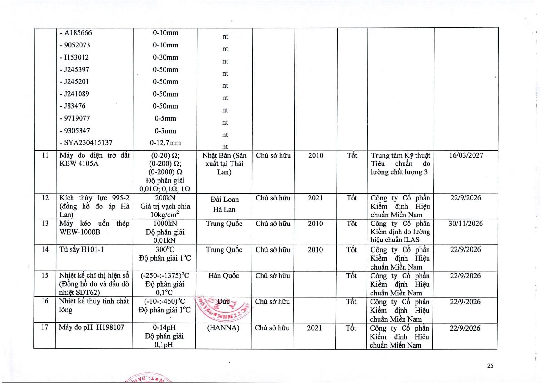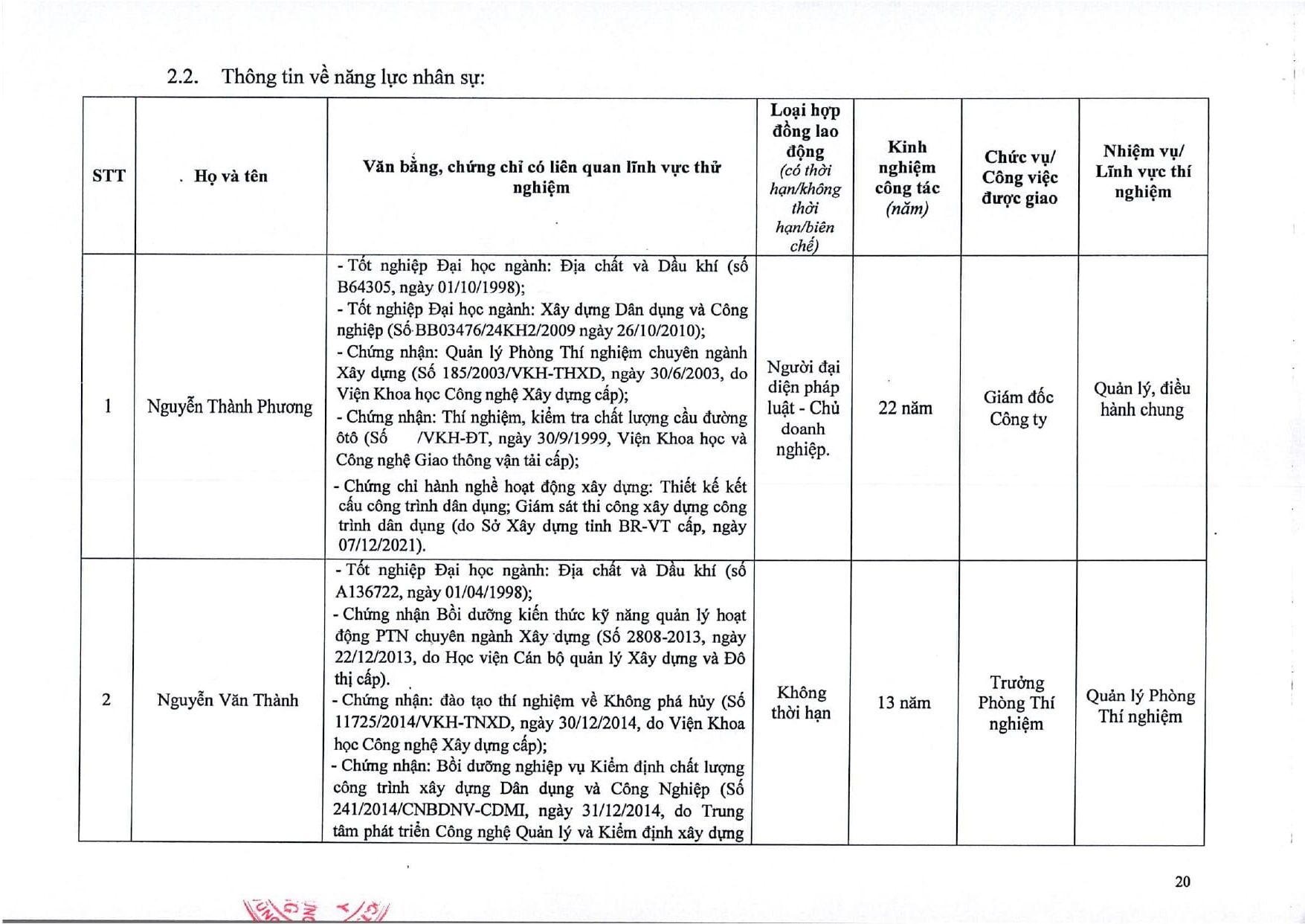 Trang chủ / Thí nghiệm xây dựng / DANH MỤC PHÉP THỬ